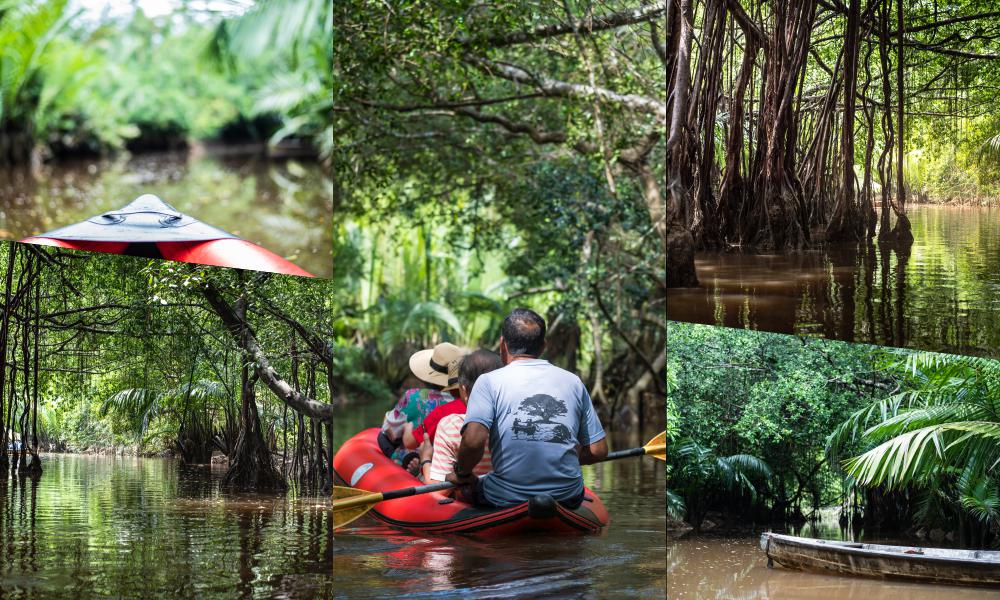 คลองสังเน่ห์ (Little Amazon)ขับรถ ~15 นาทีหากใครเป็นสายแอดเวนเจอร์เบาๆ ต้องมานั่งเรือพายชมป่าไทรโบราณที่แผ่รากปกคลุมสองฝั่งคลอง บรรยากาศร่มรื่น ลึกลับนิดๆ เหมือนหลุดเข้าไปในป่าแอมะซอน มีโอกาสเจองูเขียวพันรากไม้และนกเงือกตัวเป็นๆ