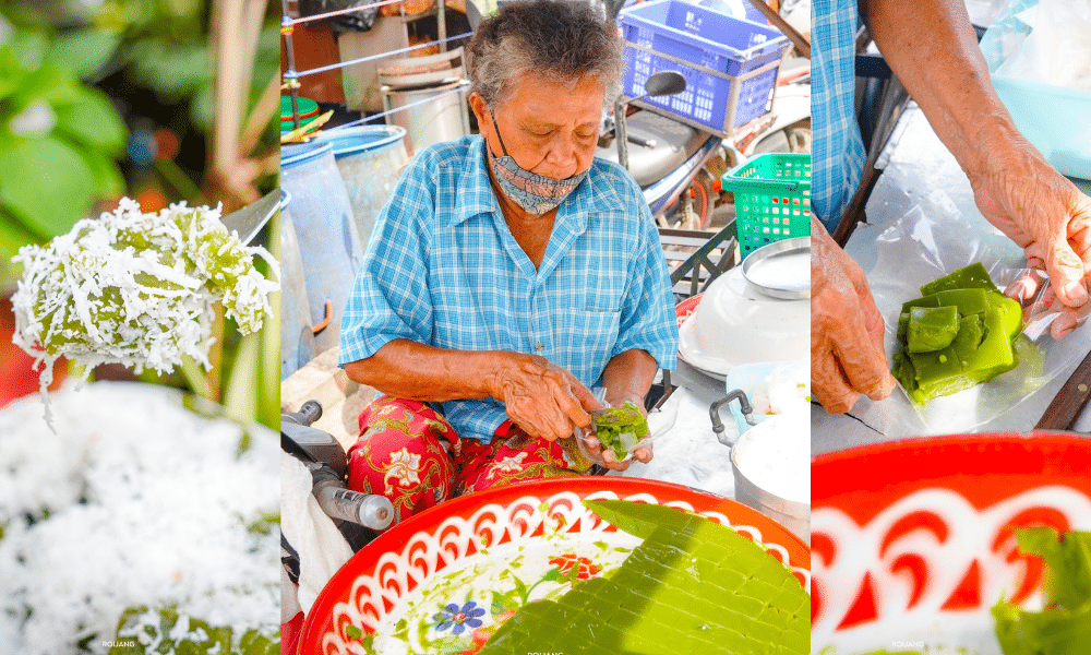 ขนมเปียกปูนเจ้าเด็ด ในตำนาน ของแท้ต้องขนมเปียกปูน “คุณยายสะอิ้ง” ในตลาดสด บขส ตะกั่วป่า พังงา